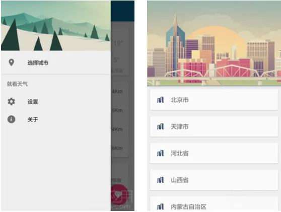 应用整体采用了Material Design,开发者将它运用的很好,使其产生出了一种「优雅」,舒适的排版与间距,让我们可以用最舒适的感觉看天气,没有任何不适。