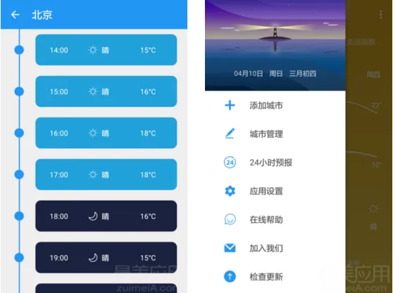如果要我在这么多应用中选出对Material Design运用得最好的应用,Weather Timeline一定是其中之一。其对Material Design的深刻理解,让我这个谷粉都自愧不如。