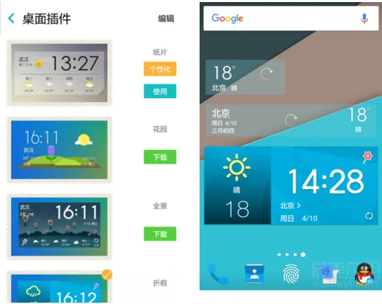 小部件的数量偏少,只有三个,但是小部件是有商城的,你是可以下载不同的小部件的,这对想要装饰自己的手机有懒得折腾zooper的美友很有帮助,目前种类还比较少,却很美观。