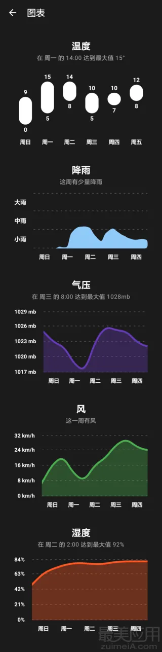 而在实用性方面,一加天气也是与其他软件无异,只不过信息的描述更加简洁,以至于在实用性这方面打了折扣。气温变化曲线图倒是更直观些,容易获取到信息。