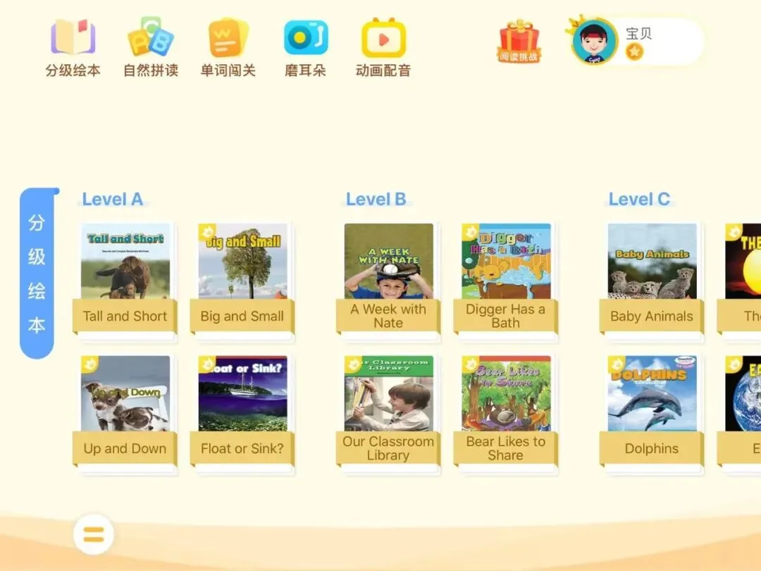 这样一看就知道,它不仅是一个科学系统的英文分级阅读读本馆,同时还能磨耳朵、背单词、阅读书籍、纠音、看动画、听音频等,的确是不可多得的优质资源。