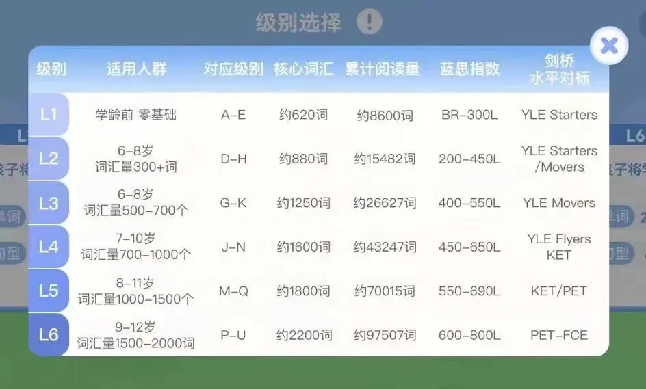 阶段测试目前已经覆盖阅读计划的全部level,每个level会有5-6次的阶段测试,来检测孩子的学习效果。孩子每学30本书左右,系统会出一份阶段测试题,包括12个题型25道题,测试结果包含对当前阶段学习建议。