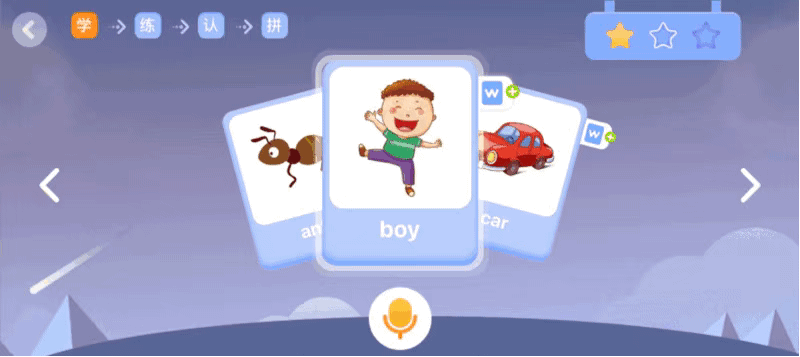 每本绘本阅读都包括了单词预习、绘本听读、跟读挑战、趣味闯关几个环节,用这样的闭合式阅读的方法来帮孩子们更好地掌握。