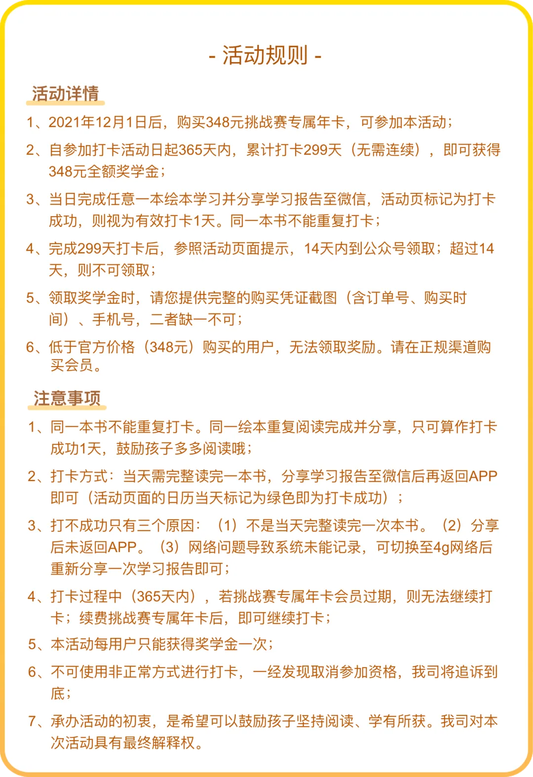 8、每个账号只能同时进行一次打卡活动,还在进行其他打卡活动的用户无法参与本次活动(已经领取奖励的可以继续报名)。