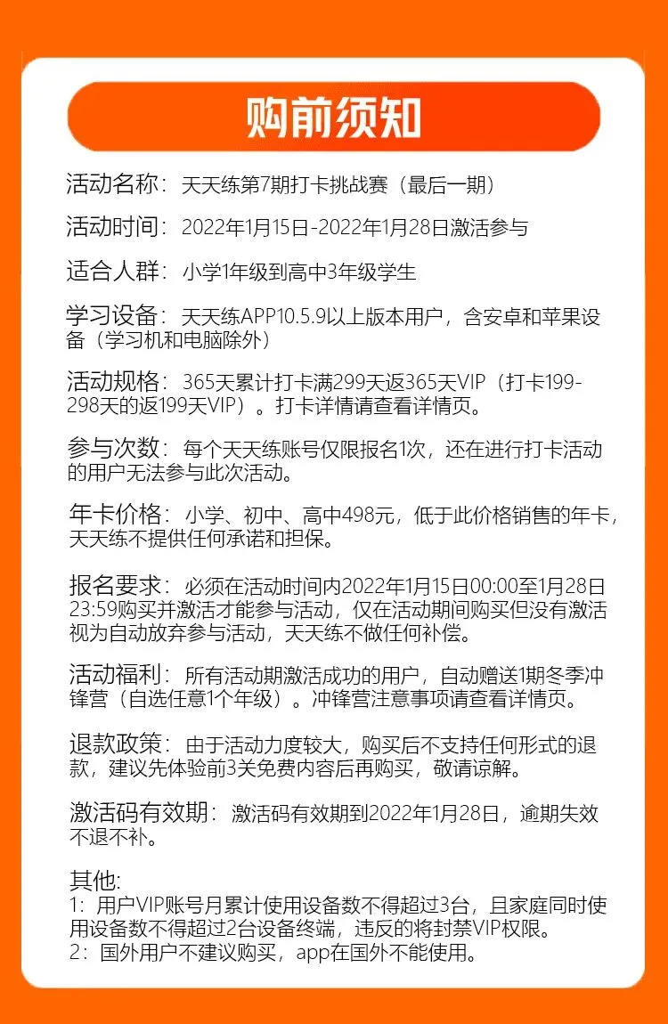 4、购买年卡的用户,需要在1月29日23:59之前激活,才可以参加打卡挑战。