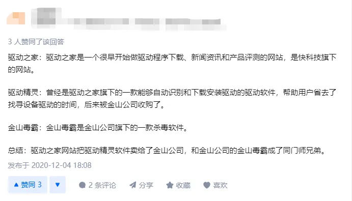 好奇的我百度了驱动精灵和金山毒霸是什么关系。