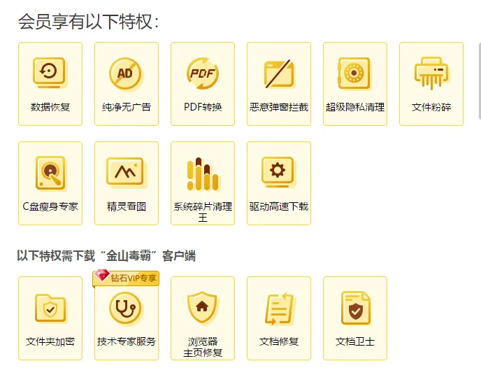 金山毒霸我知道,清理个垃圾都要会员。市面上那么多免费的,我不用就行了。