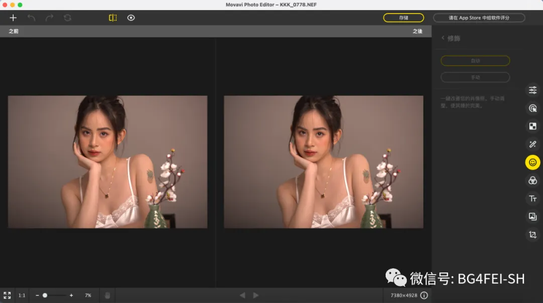 软件会独立修饰因去除而形成的缺陷,自动选择与整张照片相对应的色调。它还可以点击自动(通过按一个按钮)提高图像质量。编辑确定需要和要更改的参数(色调、亮度、对比度、白平衡等)。