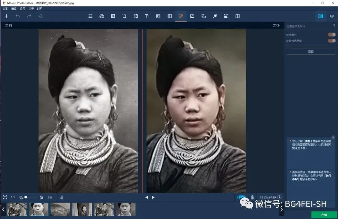 老照片编辑:编辑消除老照片损坏,并进行调色和画质提升