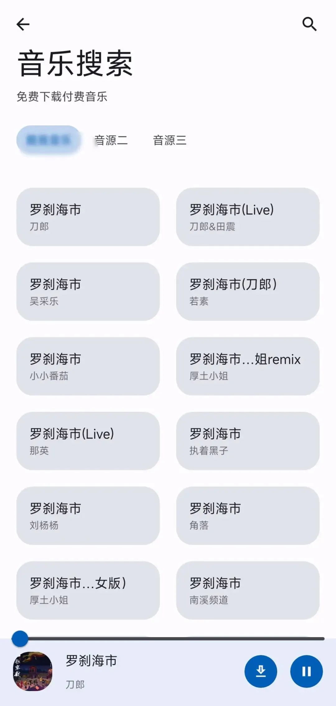 功能不错,比如搜索有三个音源,还可以直接播放和下载,不过没有歌词