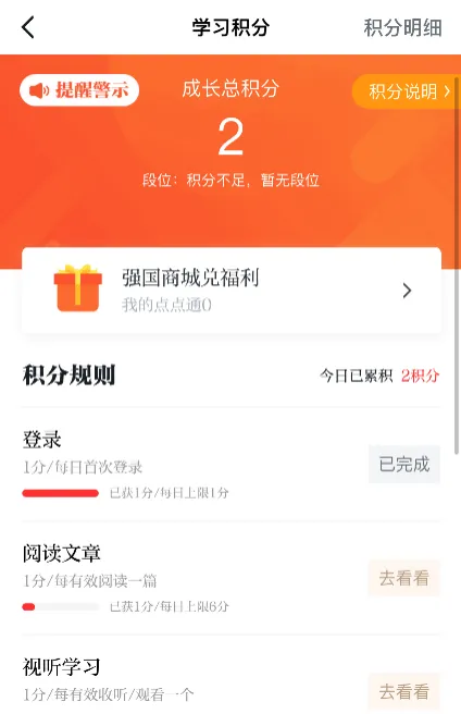 设有积分制度,激励学习,习惯养成,还可以在商城兑换福利。