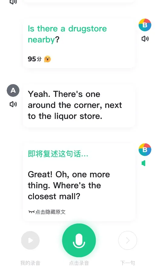 口语练习有打分,能反馈发音问题。