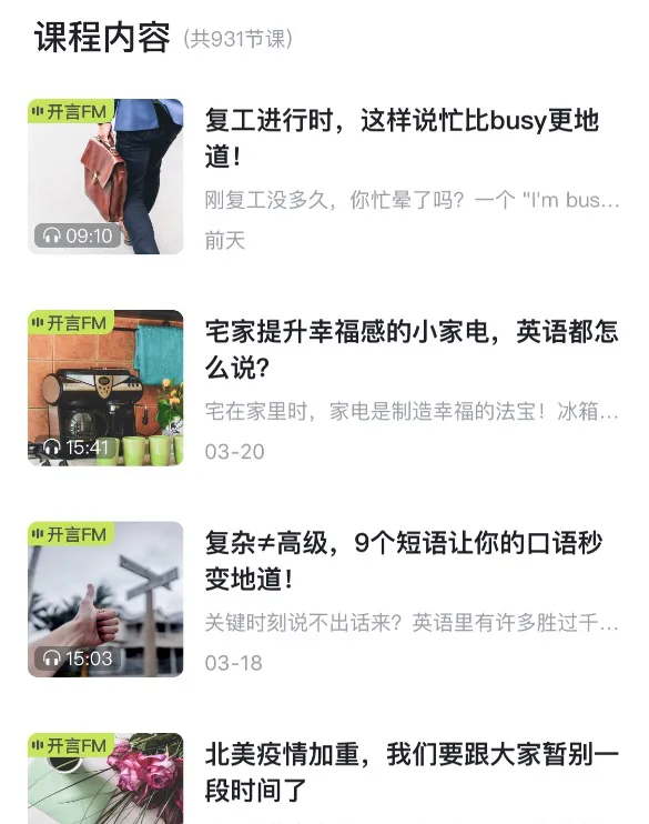 各种丰富的课程内容,十几分钟一集,