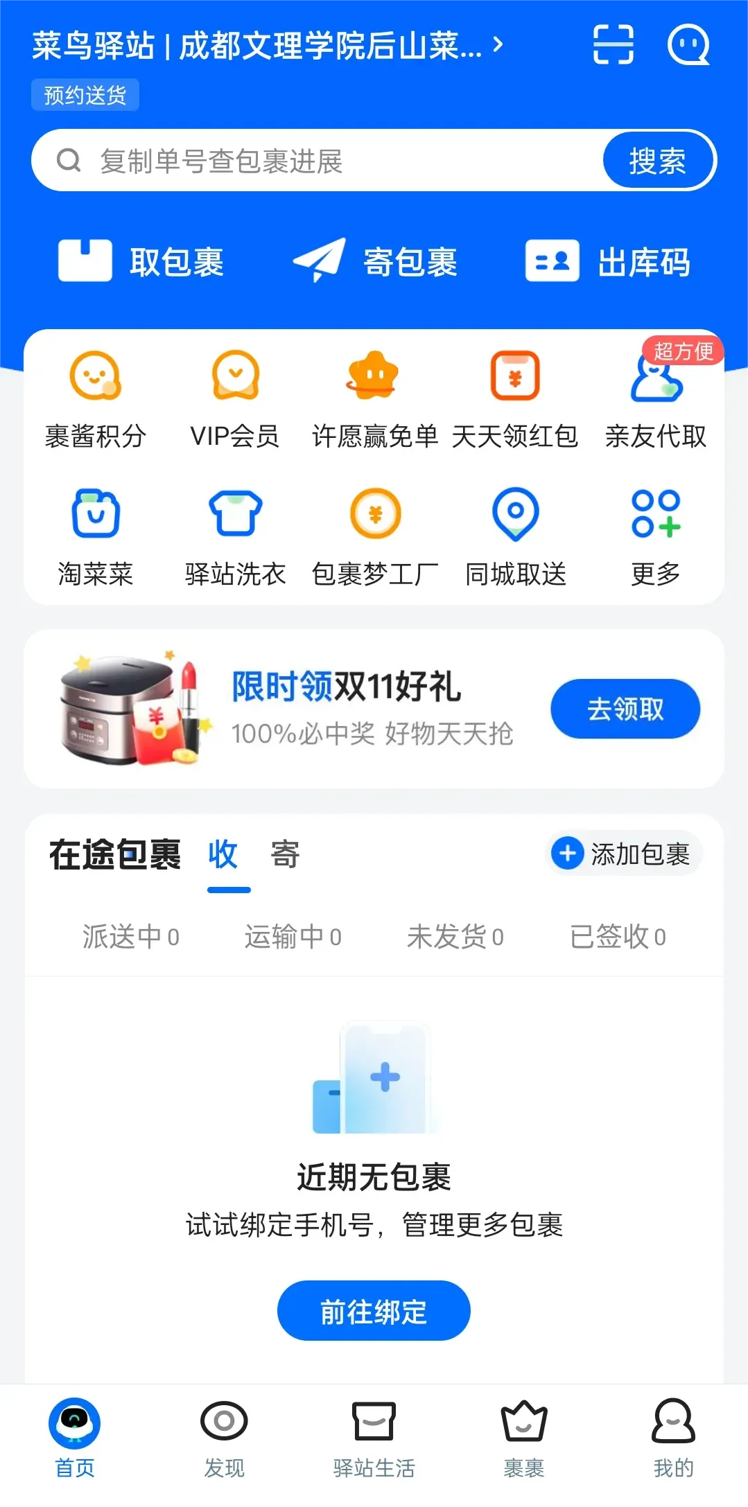 您的包裹已到菜鸟驿站