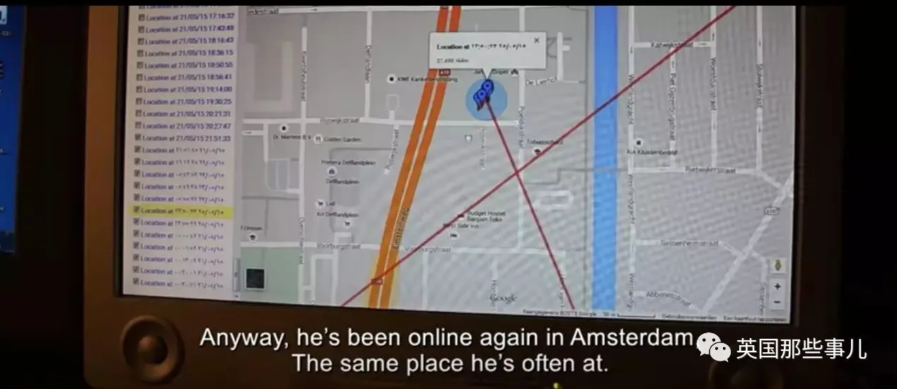 发现他从偷手机之后,更换了3个地点,在阿姆斯特丹的某个位置不动了。
