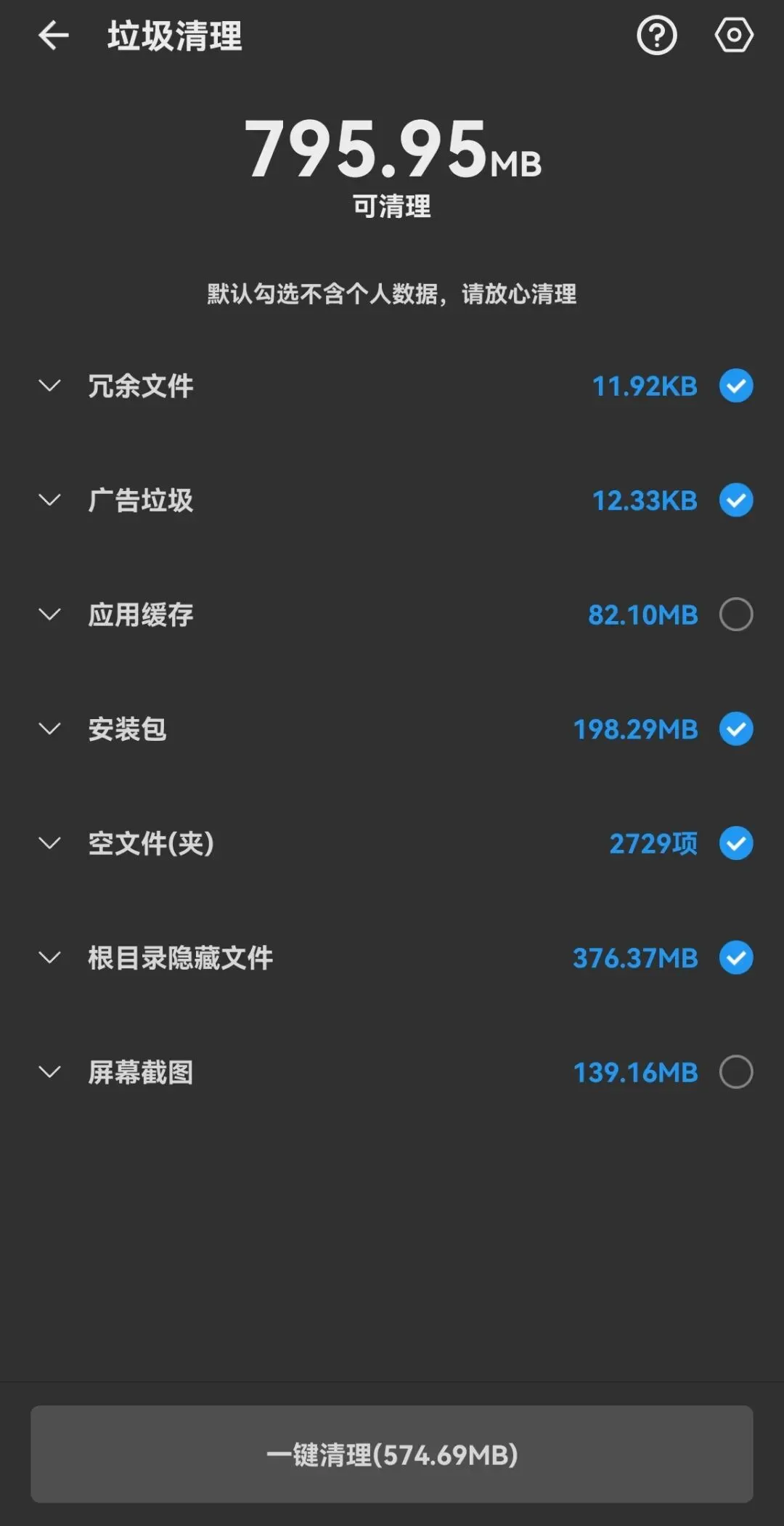 全盘垃圾扫描:自动归纳垃圾类型,一建清理垃圾文件 -