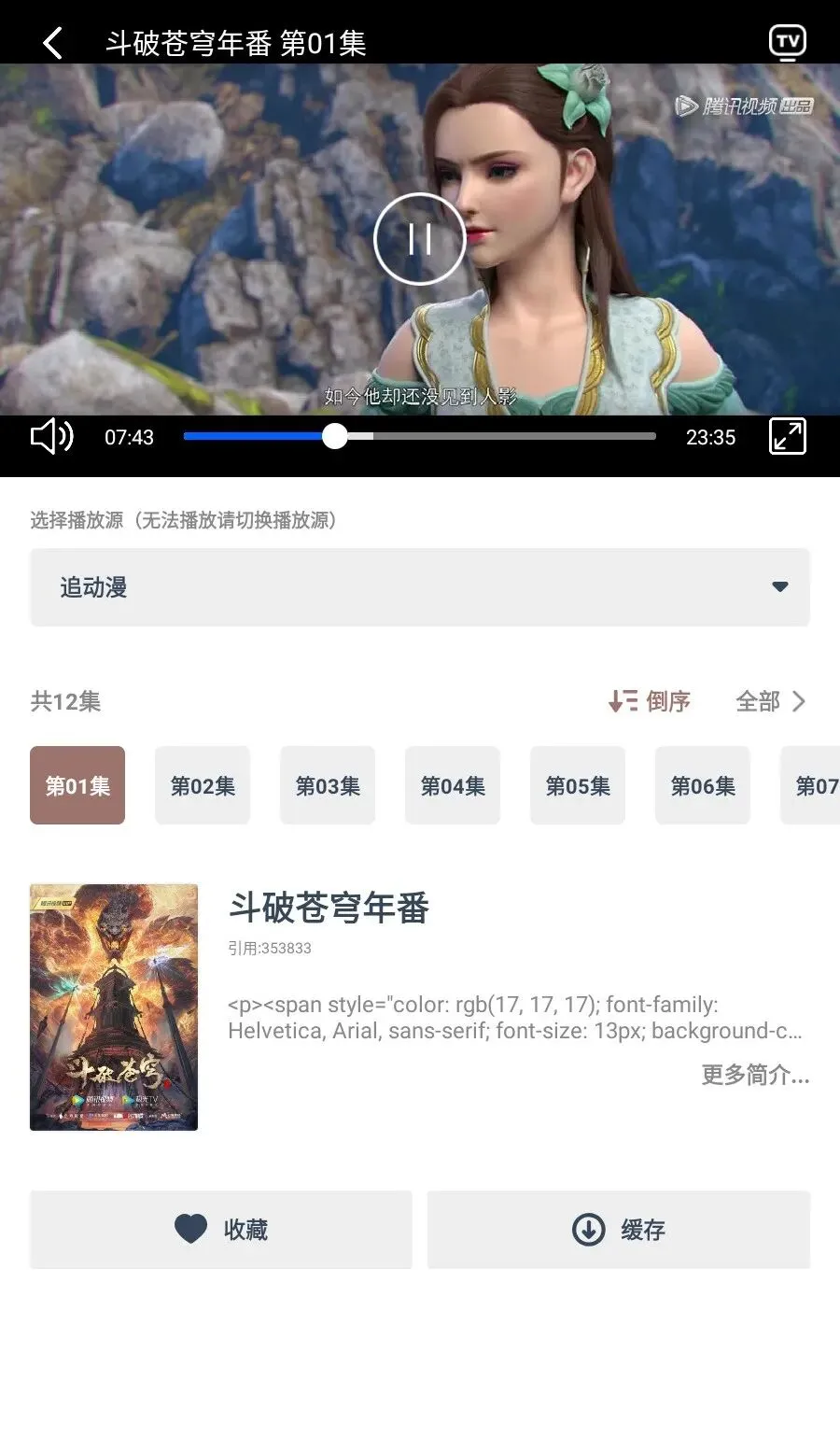 4、在视频播放方面,软件支持投屏观看、倍速播放以及自由切换番剧的播放源,此外大家还可以下载缓存自己喜欢的番剧哦~
