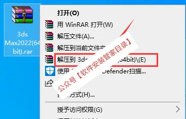 1.选中下载的【3ds Max2022(64bit)】压缩包,鼠标右击选择【解压到3ds Max2022(64bit)】。