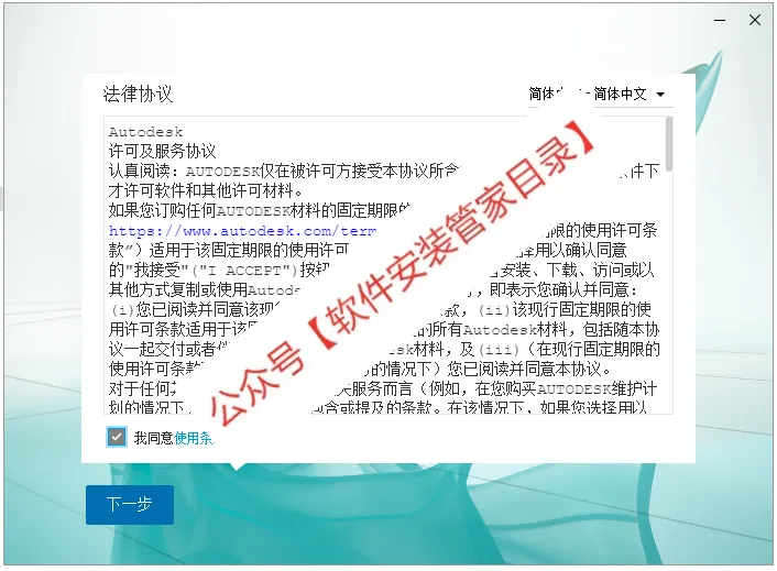 5.勾选【我同意使用条款】,然后点击【下一步】。