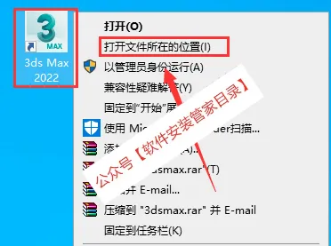 11.在桌面鼠标右击【3ds Max 2022】软件图标,选择【打开文件所在的位置】。