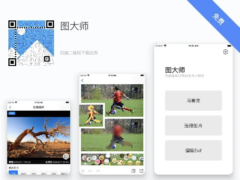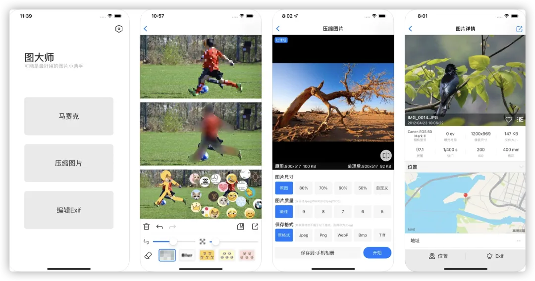 图大师 一款简便好用的图片处理小工具,能够方便打马赛克,压缩照片,查看、编辑照片exif,是一款非常全能并且实用的软件。软件目前完全免费,无广告无内购,还算不错吧。