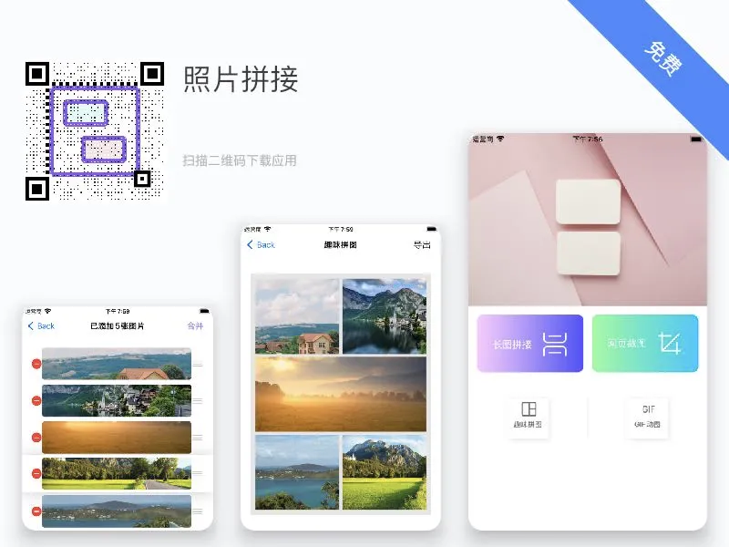 照片拼接 是一款好用的图片拼接app,软件简单直接,支持 长图拼接 ,网页截图 ,趣味拼图 ,GIF动图 ,软件非常简单,但也是非常不错的一款软件,对于需要的人还是不错的。软件目前无广告无内购,非常不错的软件。
