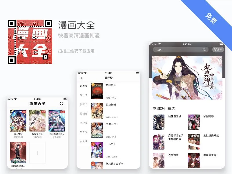 漫画大全 是一款非常不错的漫画软件,喜欢看漫画的不要错过,软件支持各种二次元漫画,而且类型全面,基本漫画都能找到,题材丰富的精品漫画,你想要的全都有!这块软件无广告无任何收费内容,可以说相当不错了,速度收入!