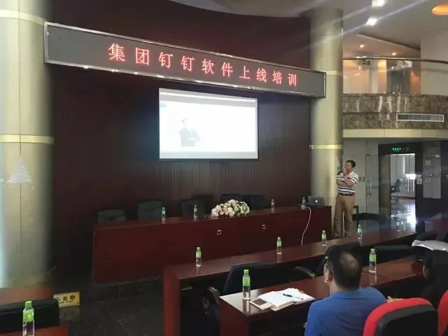 在7月28日下午,集团组织了总部全体员工和下属公司各办公室主任开展了钉钉办公软件的第一次专场培训。培训邀请专业技术人员孙总到现场讲解,先是系统介绍了该软件的作用功能,然后分手机版和电脑版,按模块对沟通、考勤签到、人事管理和行政管理审批等常用模块进行了讲解和演示操作。