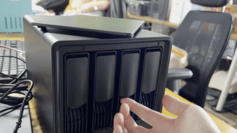提供了四个独立的硬盘架,轻轻一抠就能拉出。