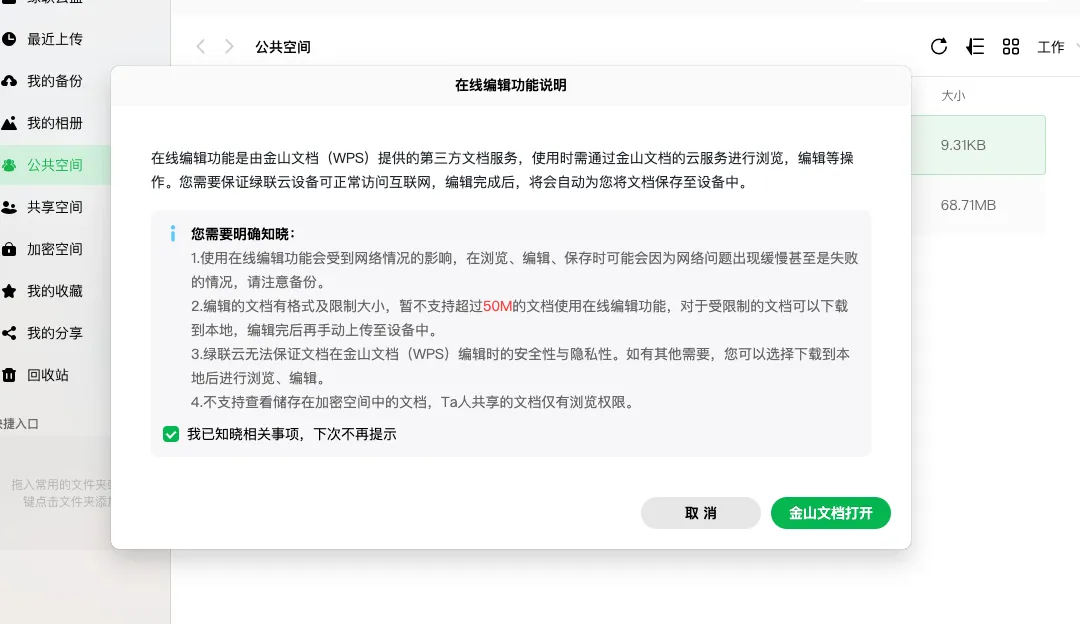 当需要和其他用户协作,你可以把文件丢到「公共空间」或「共享空间」。