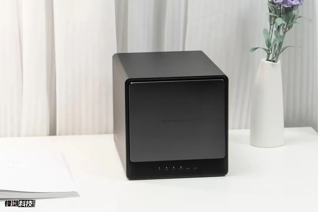 绿联私有云 DX4600 机身用的是铝合金材质,摸上去带点磨砂质感。