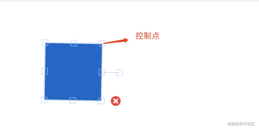 预览功能我主要是利用原生 canvas 的 toDataURL 方法来生成base64的数据,然后赋值给 img 标签。还有一个细节需要注意的是如果我们在预览之前画布仍然有选中状态的元素,那么控制点也会被截取出来,如下: