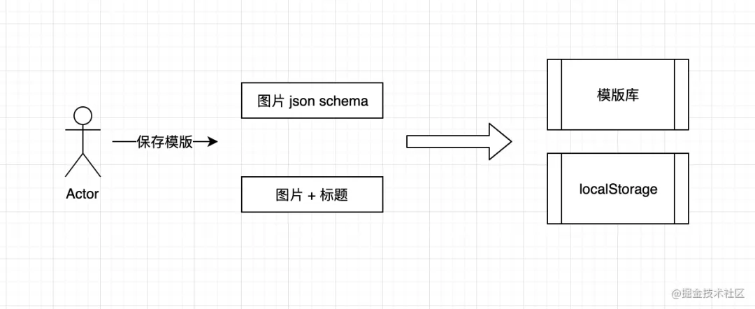 我们在演示中可以看到保存为模版之后会自动同步到左侧的模版列表中,我们下次创作时可以直接导入模版进行二次创作。以下是实现的逻辑图: