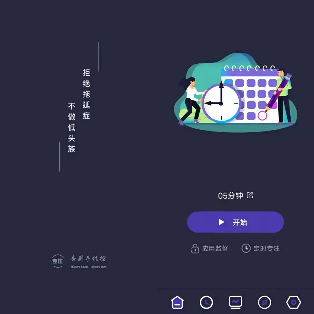 拒绝拖延症,不做低头族!点开软件首页即可开启自律时光!最短的控制时间是五分钟,对于普通用户来说,最长的时间是180分钟,会员可以增加更多时长。(我个人认为是无需开通会员的)。