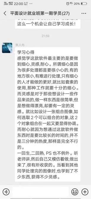 不只上面的学员,在梁平天华优博商学院,PS美工群的学员当真“炸开了锅”。不为别的,就是因为在学习过程中收获了实效看到了成果,自发表露了自己的学习心得。
