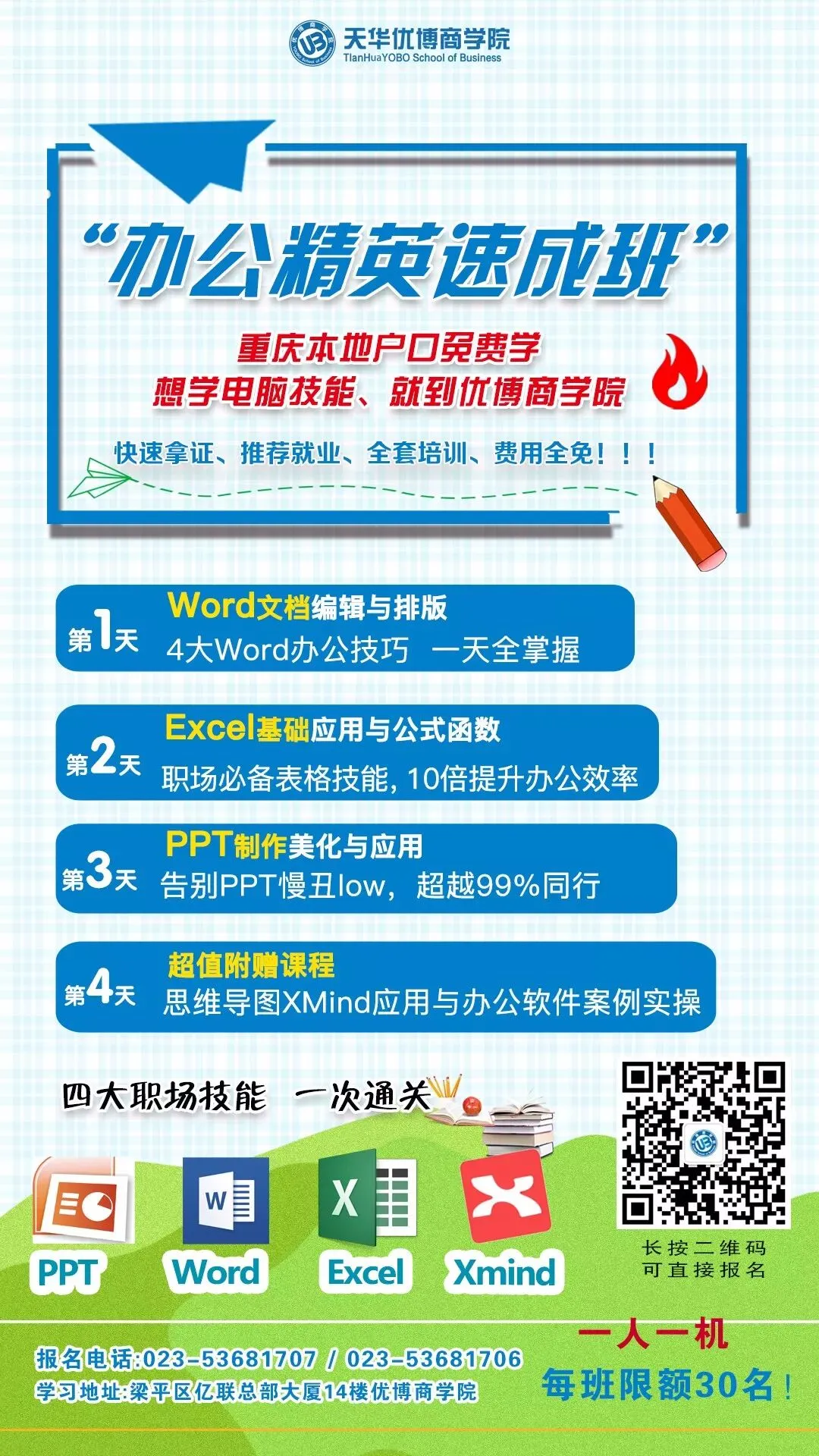 现场报名:梁平区亿联总部大厦14楼教务室