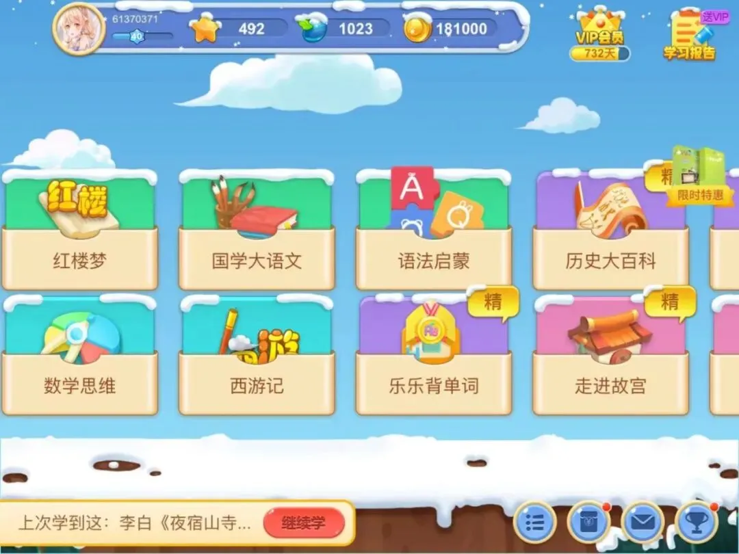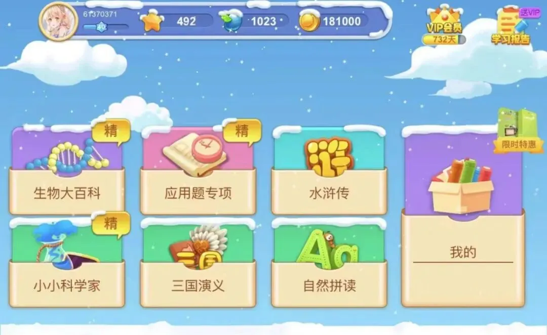 潼潼就特别宝贝她这些金币豆子星星,也特别热衷于去赚取它们,每天像用玩闯关游戏的形式来学习知识。如果要日常打卡,那更是能督促孩子养成坚持学习的习惯,让他们也更加自律。