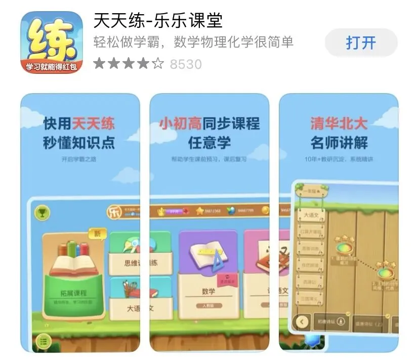 我有个朋友之前就一直在给自己家娃找能用来在家自学的浅奥资源,直到她遇到了“天天练”。那她真是好一通向我安利,说这资源真是太好了。