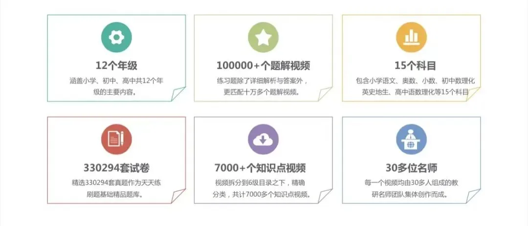 天天练的所有视频动画,都控制在3-5分钟。清晰简明地讲清楚知识点,再加上配套的练习题。