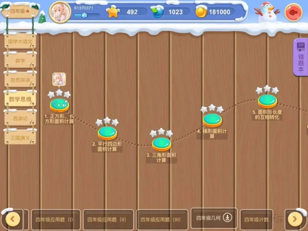 虽然可能没能做到每日打卡,但一来用作校内数学的预习,能让她很快get到新课的知识点;二来时不时会做一些思维训练的题,持续锻炼灵活思考的能力;再者就是她超喜欢的大语文视频一直在继续看,现在还加上了历史、地理、生物、科学等版块,更是令她着迷。
