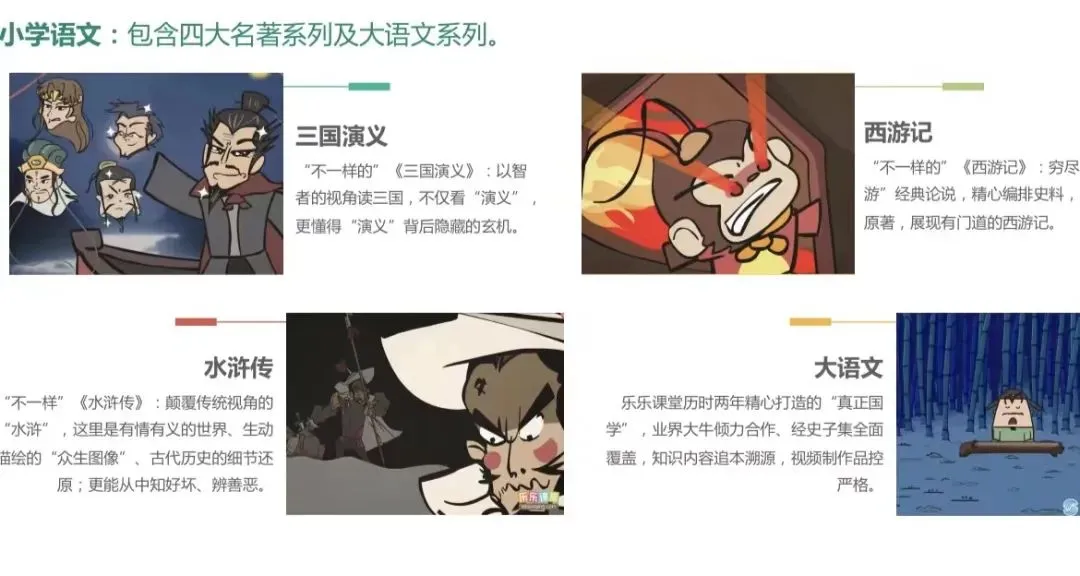 依然是每节课用有趣活泼的3-5分钟动画,让孩子一看就上瘾,看一遍就记住许多文学常识的视频课形式。
