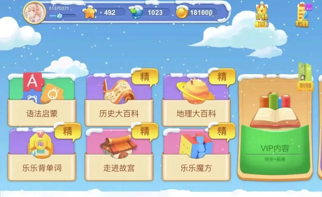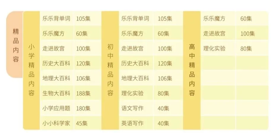 以及一些需要付费另外购买的地理、生物、历史大百科视频课,还有一些像背单词、应用题专项、故宫、魔方、科学等付费精品课。