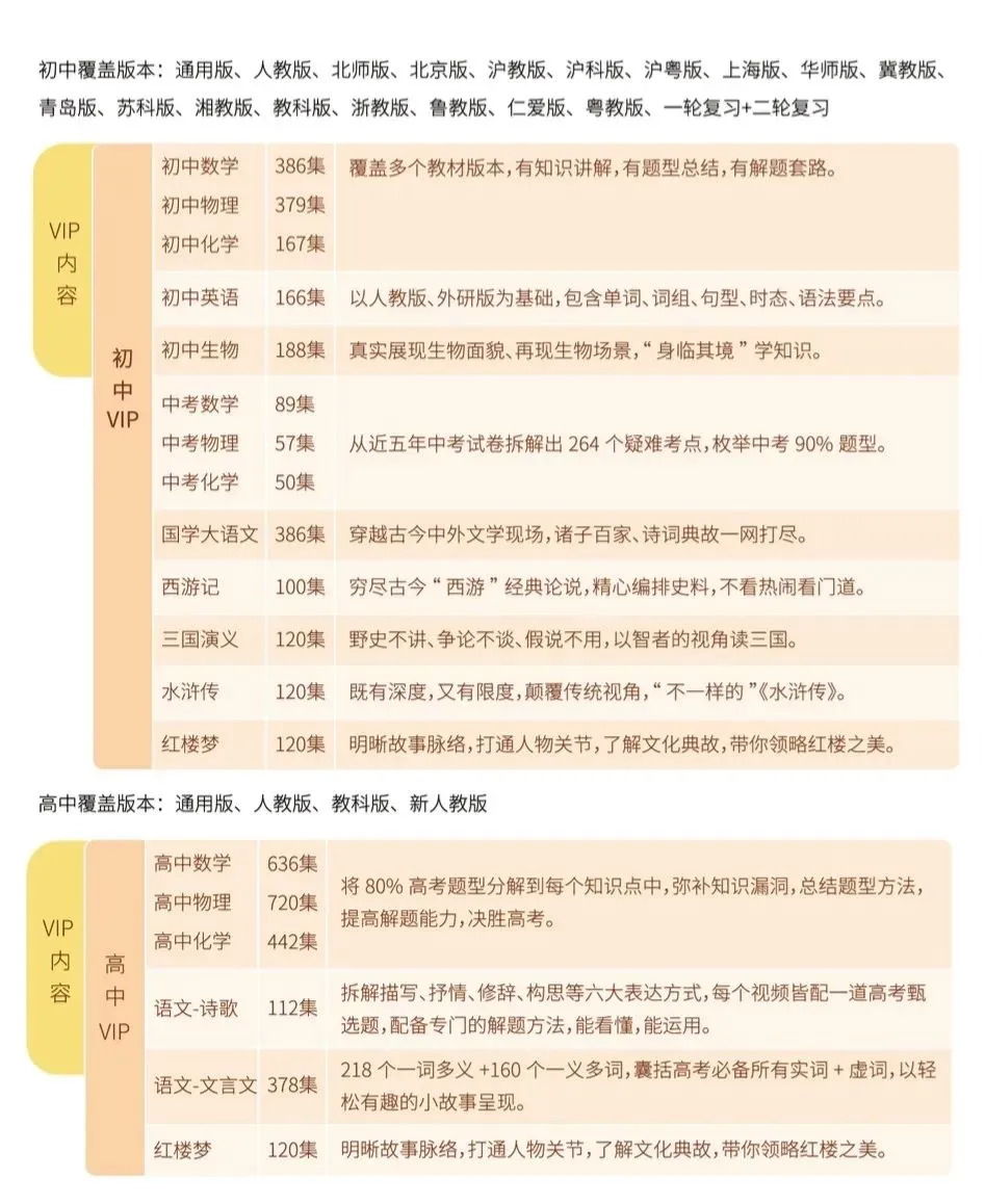 简单来说,它是一款从小学到初中、高中都适用的教辅APP,核心内容包含了: