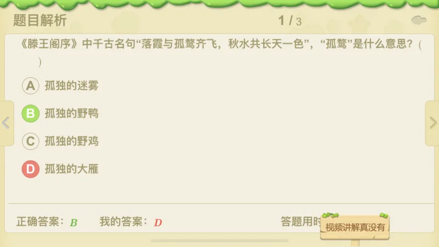 里面会搭配些练习题,把视频中应该掌握的硬知识提炼出来,考考孩子是不是光顾着看个热闹。
