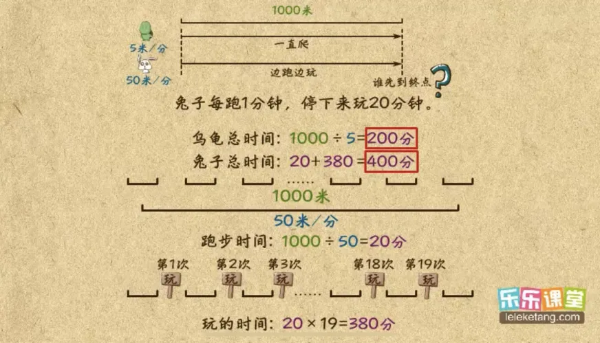 就拿五年级的“走走停停行程问题”来说,“龟兔赛跑”是一个特别经典的题型。