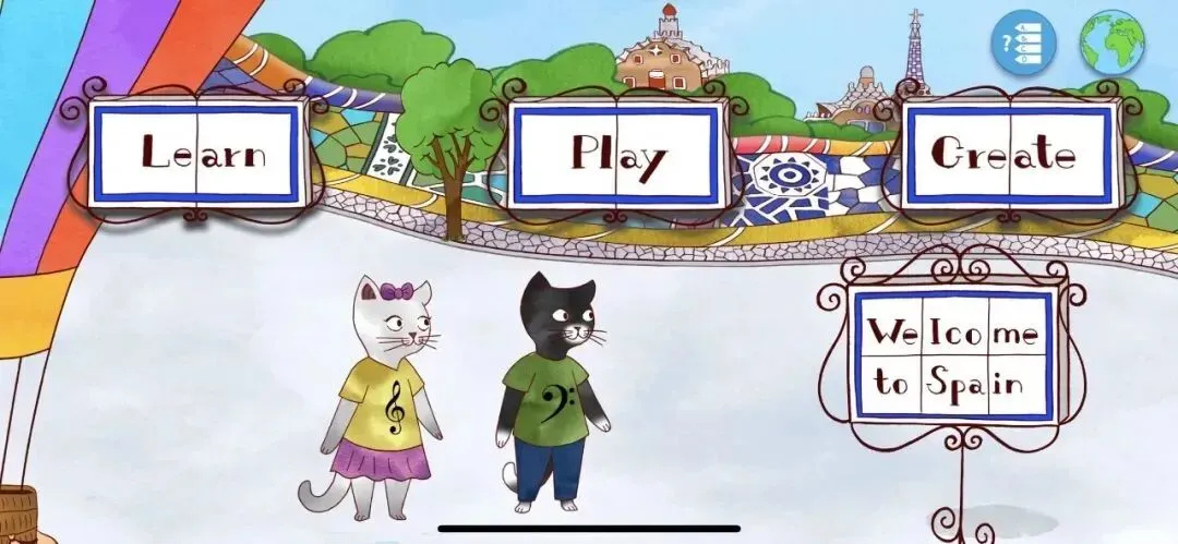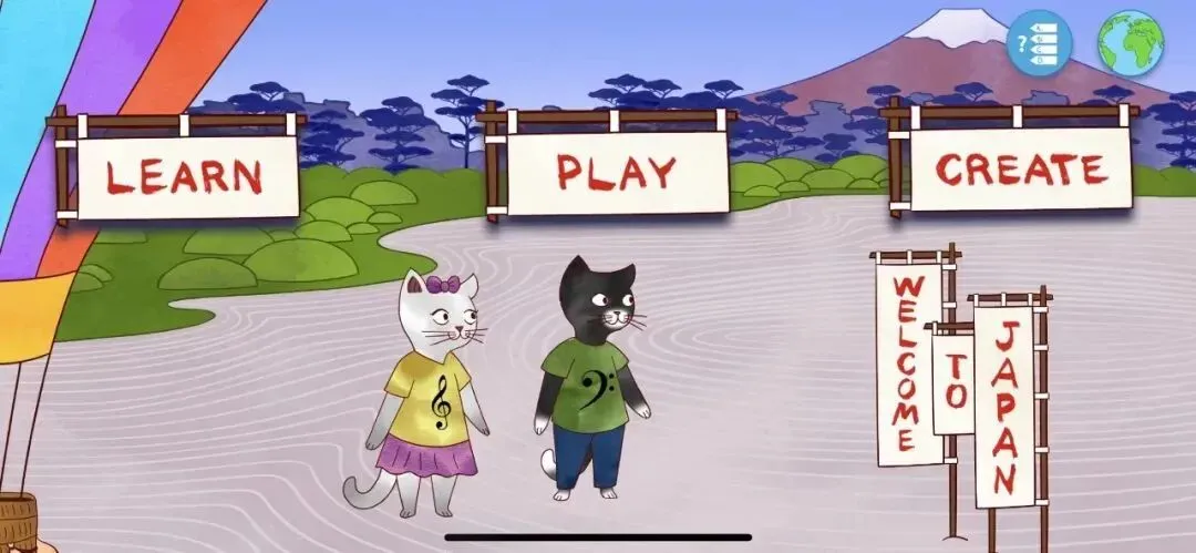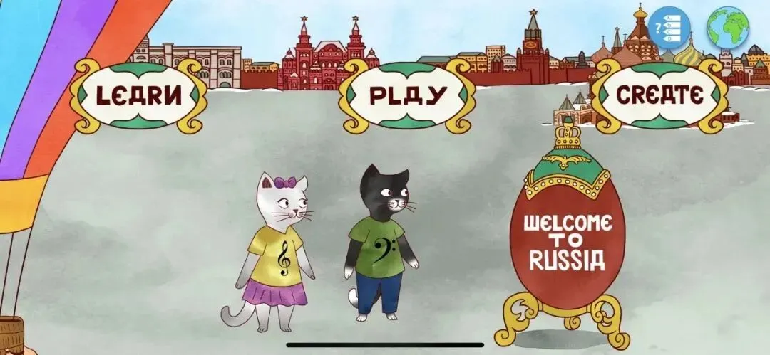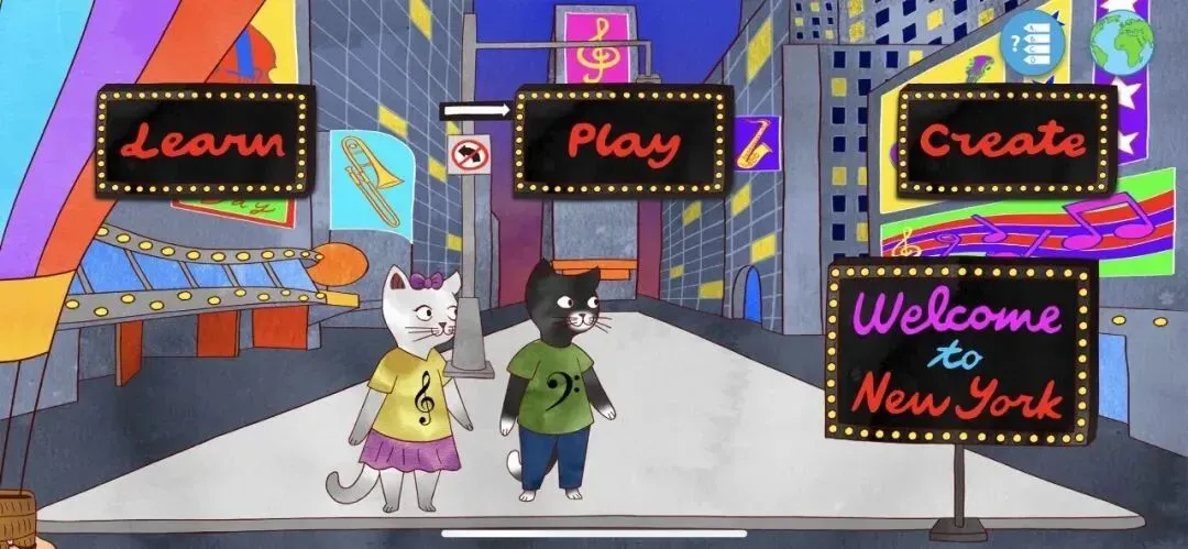 主人公就是这两只猫,他们站在了纽约的街头,上面有三个按钮:Learn、Play和Create。