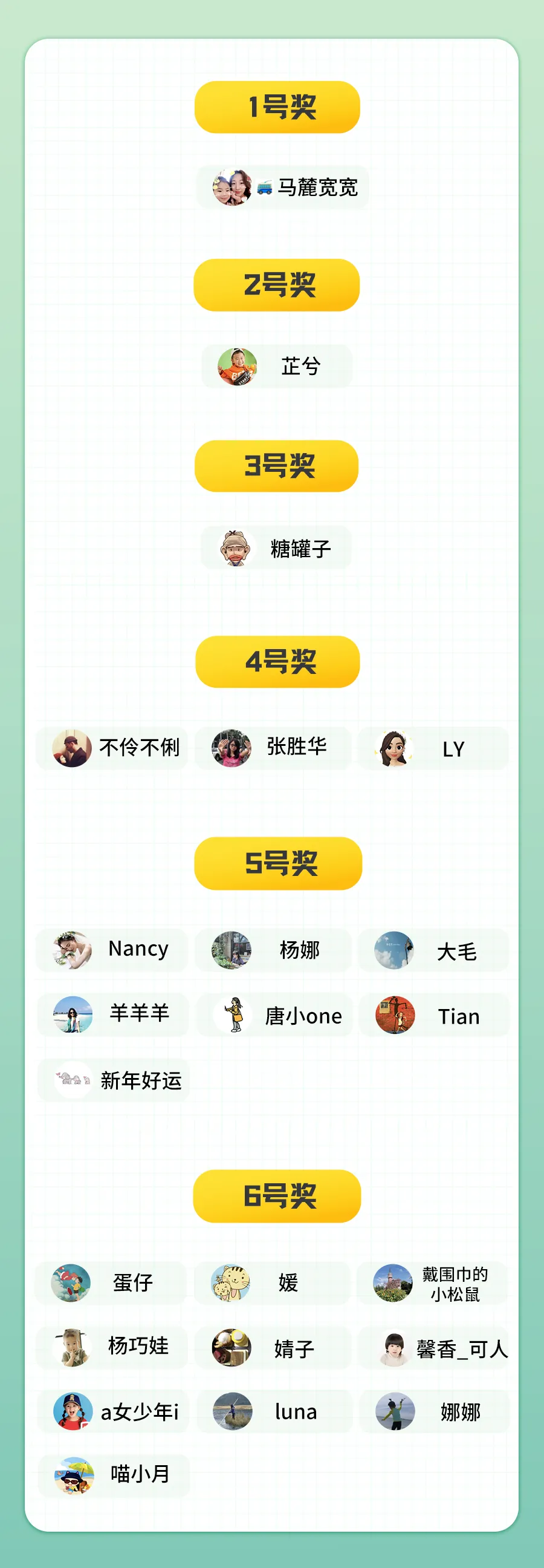 最后,文末周年抽奖名单出来啦,参与的仙女记得去领奖~