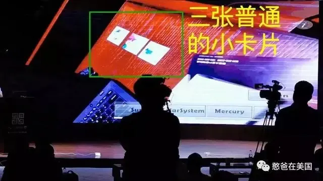 通过AR技术,卡片,变成了背景墙、激光器和光栅!