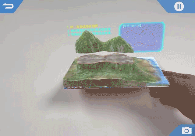 这个就是用AR展现的山的构造,老师会结合这种3D场景,很生动地给孩子讲解关于山的各种知识。