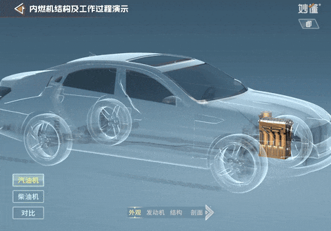 首先通过3D场景,给孩子展示一辆汽车,车头就是一台内燃机。
